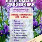 Zaterdag 22 oktober vindt in de foyer van de Vredeskerk een gezellige bloembollenmarkt plaats. Van 10.00 tot circa 14.00 uur wordt er een ruime sortering van uitsluitend eerste kwaliteit bloembollen aangeboden. De tijd is nu aangebroken om uw tuin of balkon alvast voor te bereiden op een fleurig voorjaar in 2023, dus zorg dat u er vroeg bij bent want op = op!