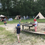Niet alleen het kamperen is een traditie, er zijn ook jaarlijks terugkerende activiteiten. Zoals de hagepreken op Hemelvaart en zondag, excursie en het kampvuur, sport en spel. Ook voor de kleintjes zijn er tradities: Zet snel je kaboutermutjse op als kabouter Pim de camping bezoekt, anders gaat hij weer naar huis! Zo’n bezoek geeft vertier aan groot en klein: een puzzeltocht en veel grappen en grollen. Gezamenlijkheid kenmerkt het weekend, maar er is ook ruimte om te kiezen om al dan niet deel te nemen aan activiteiten. Als nieuwelingen vonden wij het bijzonder te zien hoe iedereen op eigen wijze met hart en ziel en naar eigen talenten bijdraagt aan het verblijf voor de hele groep. We hebben de mensen waarmee we zondags in de kerk zitten op een nieuwe (bloedfanatiek tijdens sport en spel) en verdiepende (reflecterend op geloofsbeleving) manier leren kennen en daar zijn we dankbaar voor. We zijn benieuwd waar het 30e Hemelvaart – kampeerweekend ons brengt!
